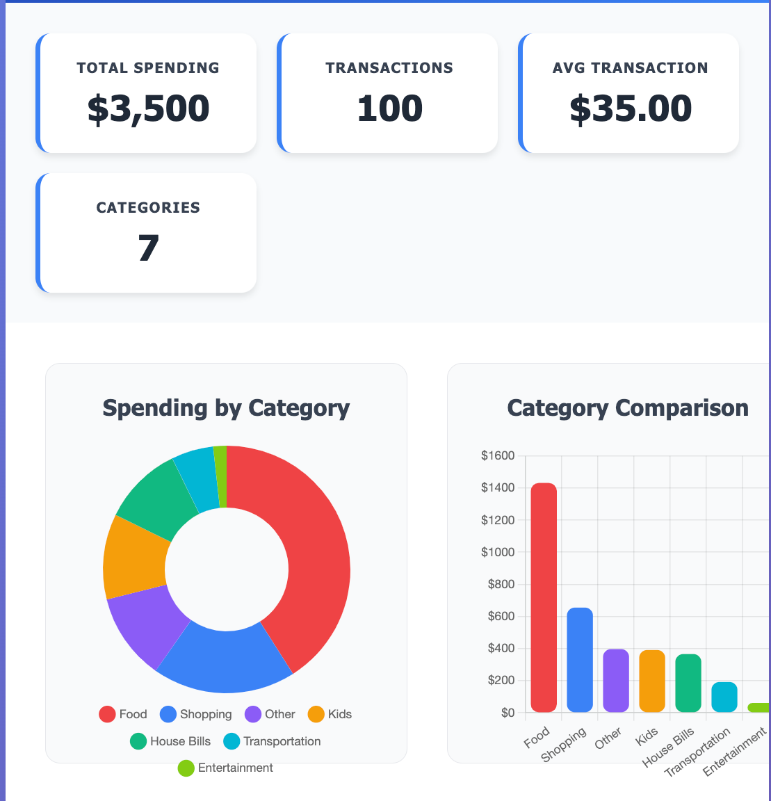 Step 1: Read & Categorize - AI reads the PDF, extracts 100+ transactions, and categorizes each purchase into logical groups.